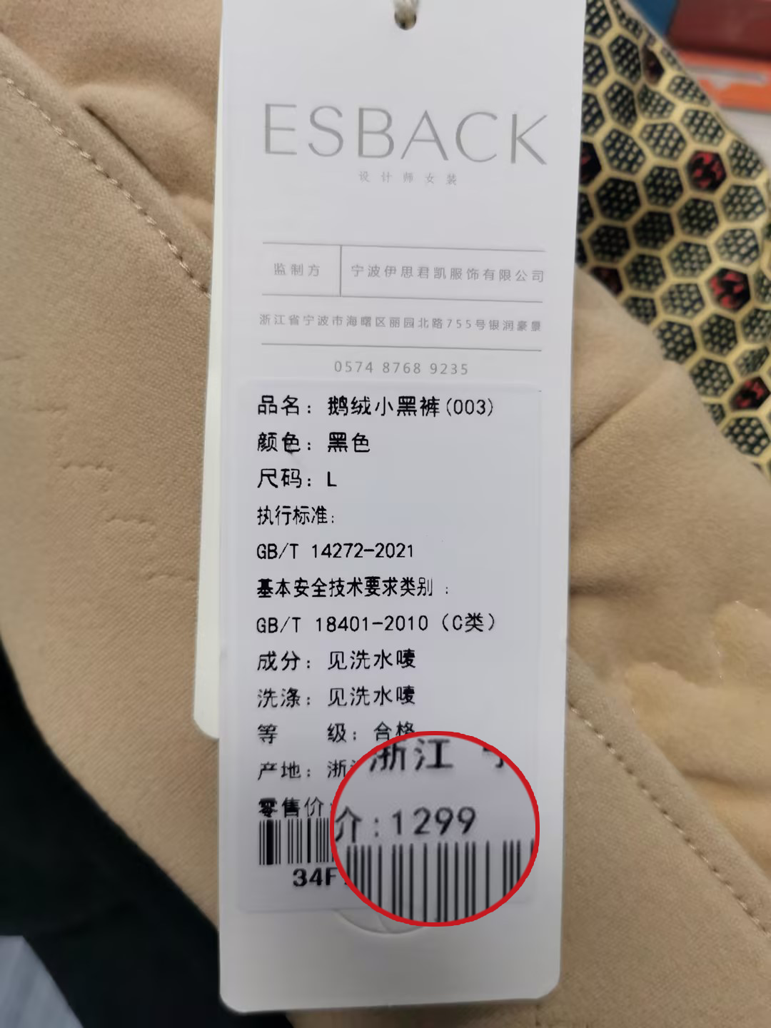 ESBACK这款鹅绒裤线下专柜价1299同步发售,现在购买,只需139元!