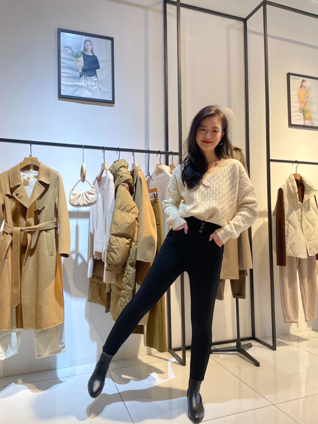 ESBACK这种利落铅笔裤型就很适合,它能削弱腿部的肉感,让腿看起来更纤细。