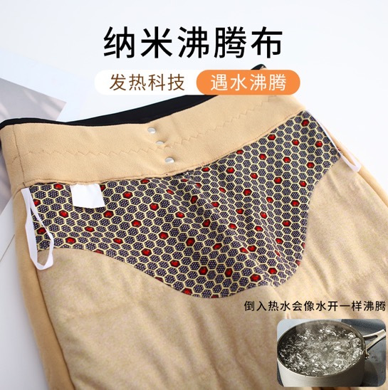腹部处贴心设计了纳米沸腾布,这种布料有非常好的热传导性和结构稳定性,能够让热量持续在腹部循环不流失,达到持久保暖的效果。