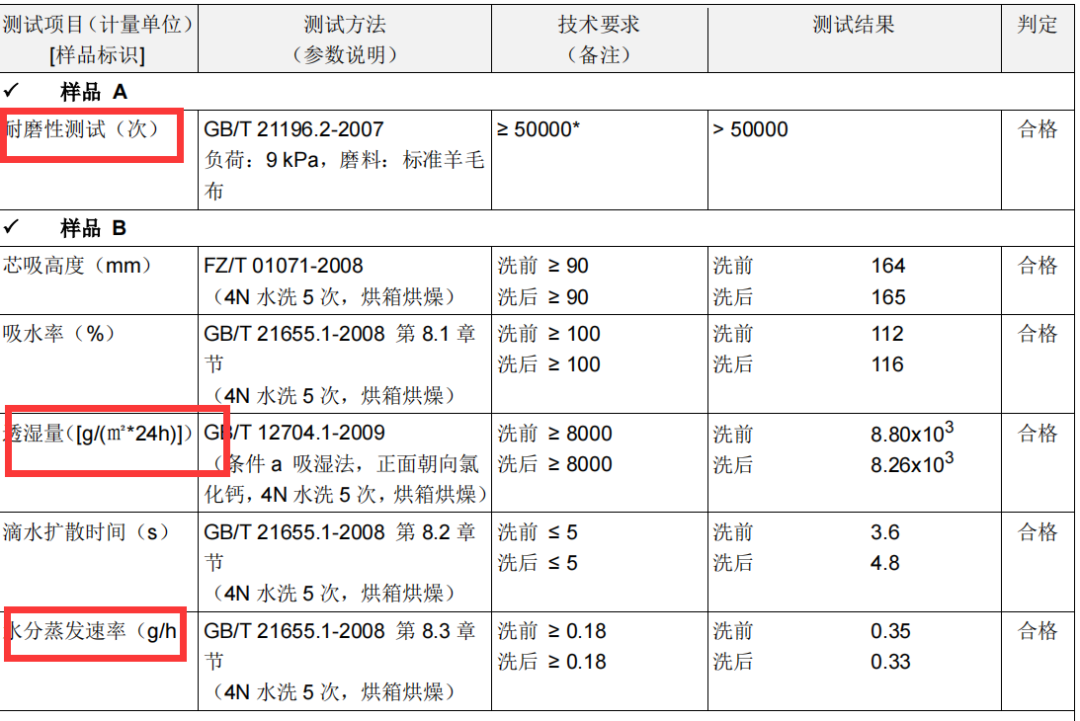 一开始就拿到了它的耐磨测试报告、速干测试报告。