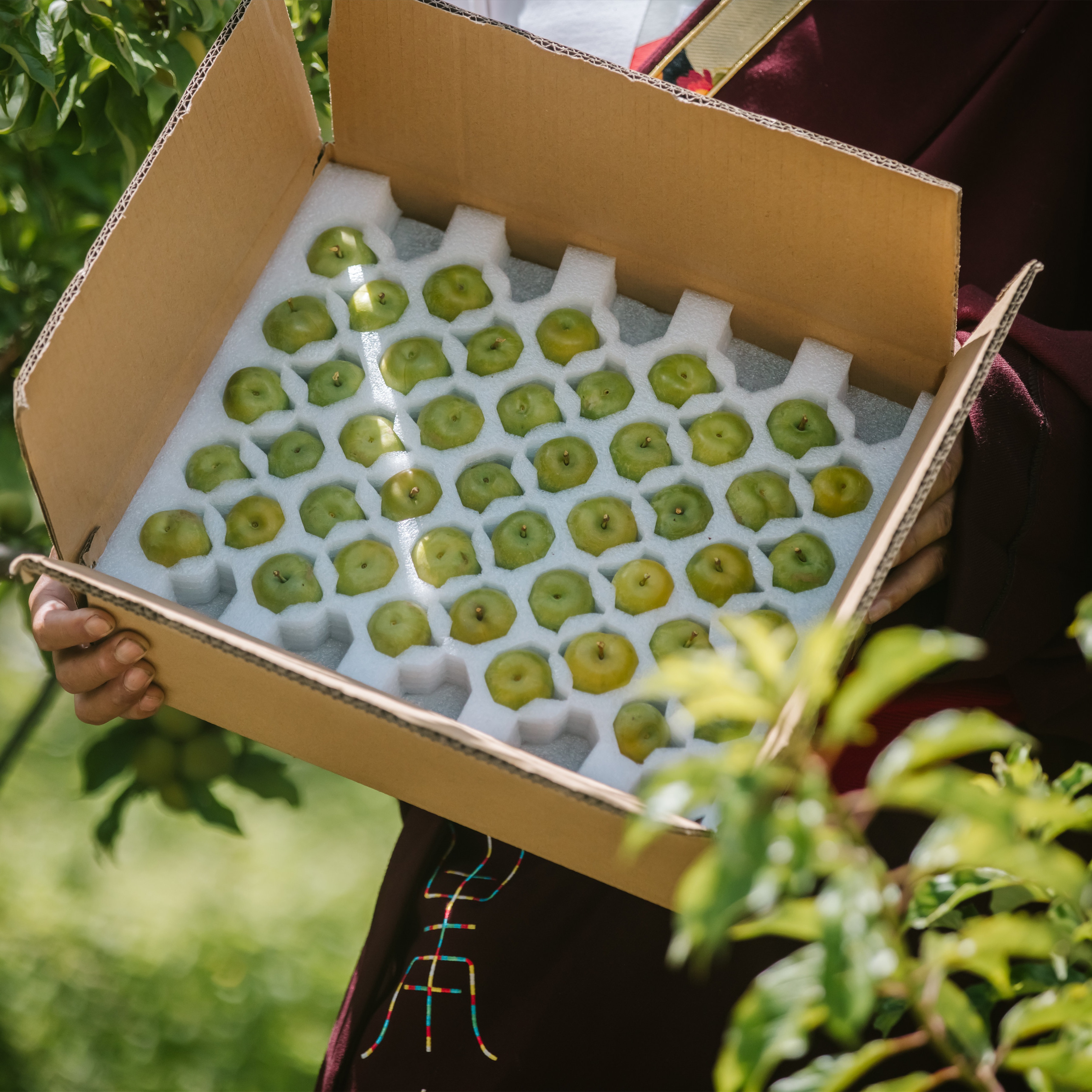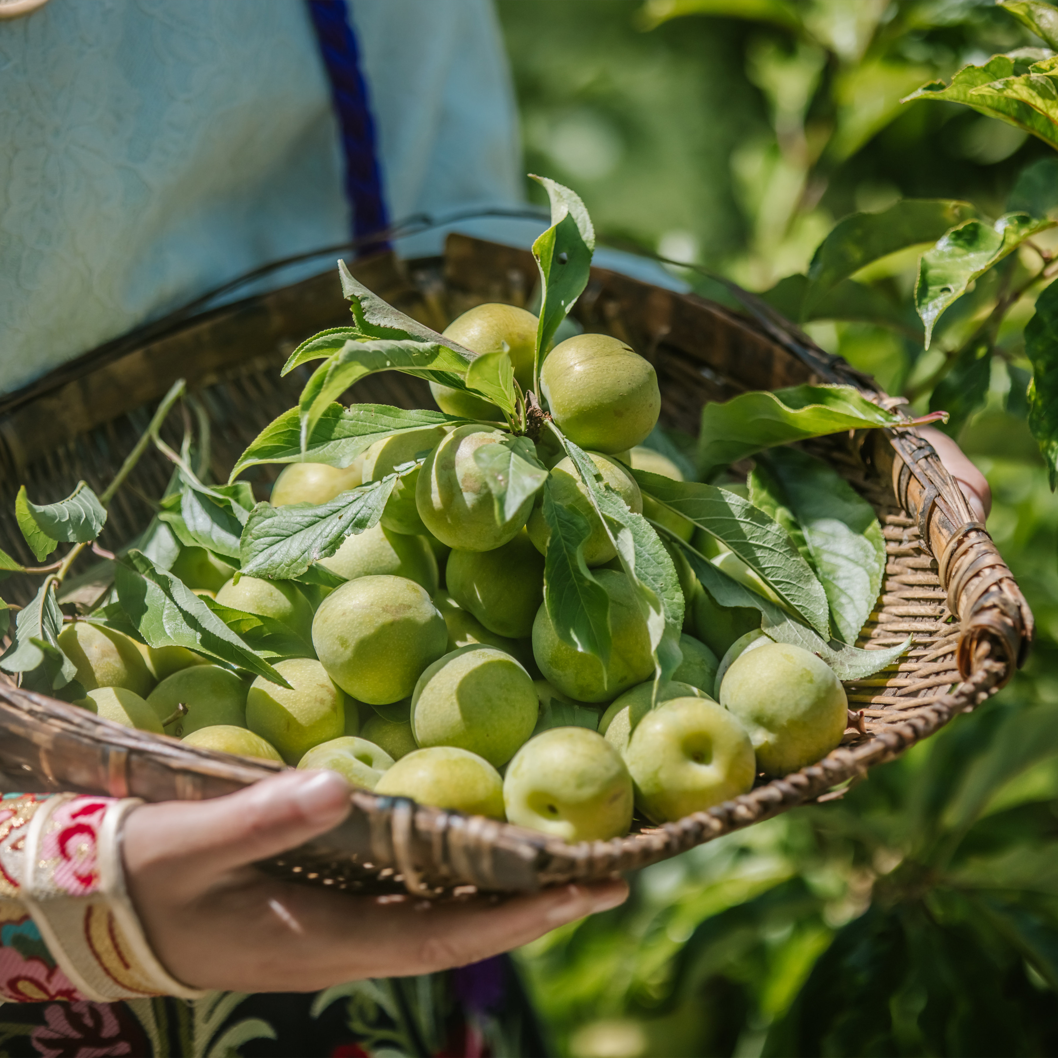 这款青脆李来自于海拔2566的高半山,果树与房屋错落分布。果树