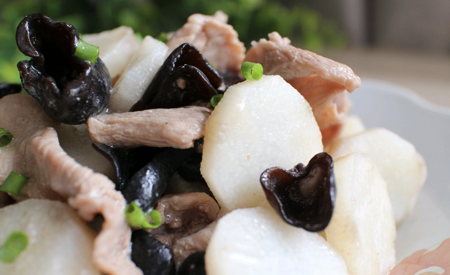 特色:黑白分明,口感脆爽。木耳被喻为“肠道清道夫”,与山药同炒,滋阴润肺,清理肠胃。