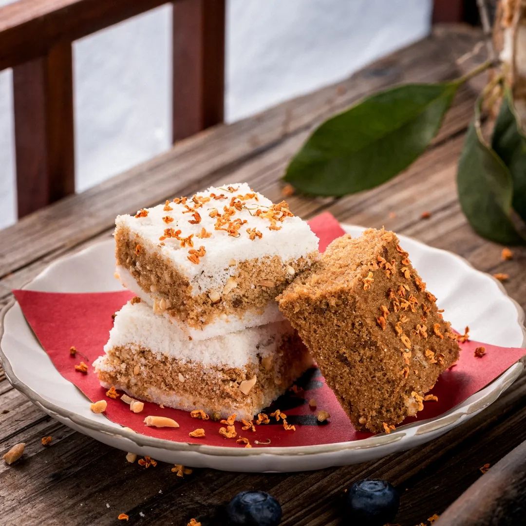 在众多糕点中,令人久久不能忘怀的是传统桂花米糕。