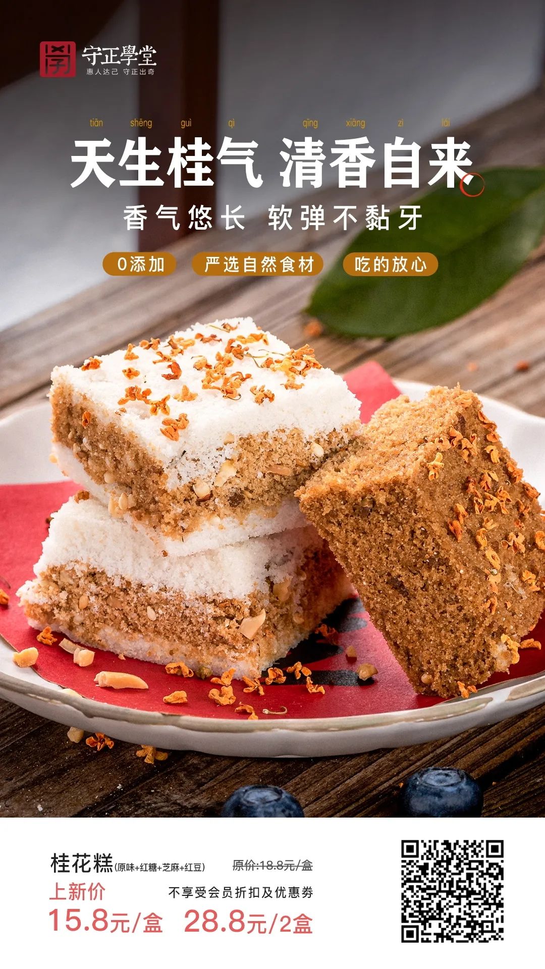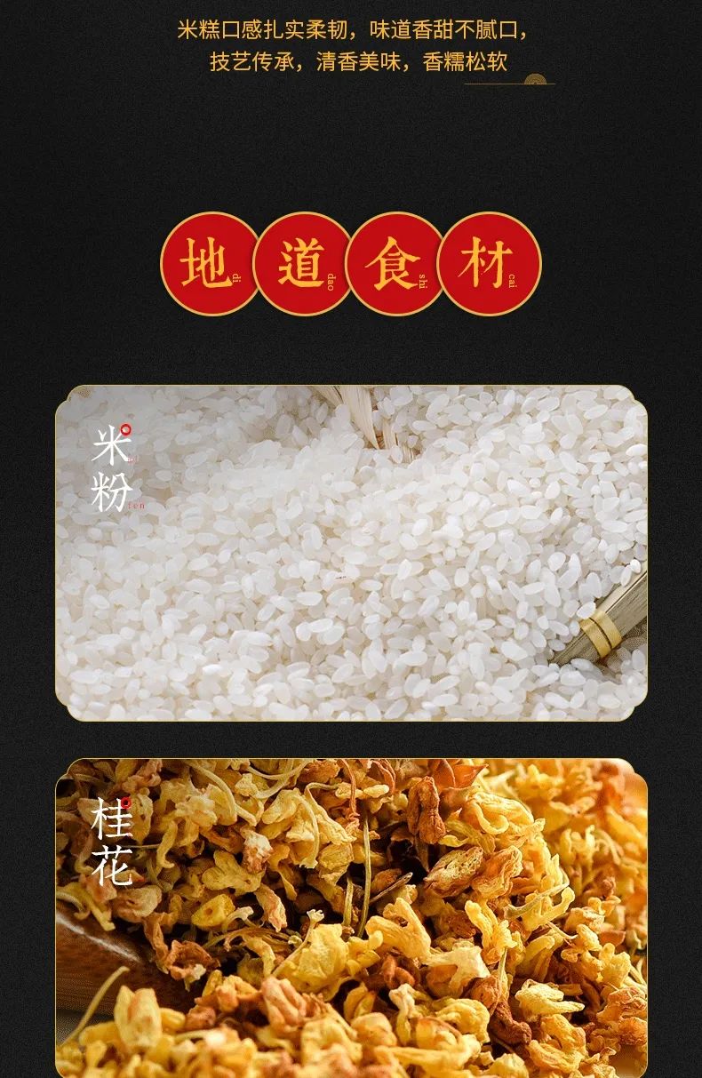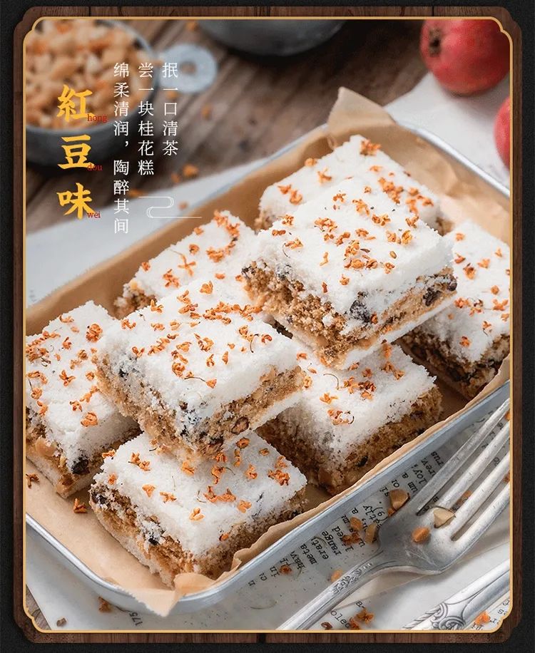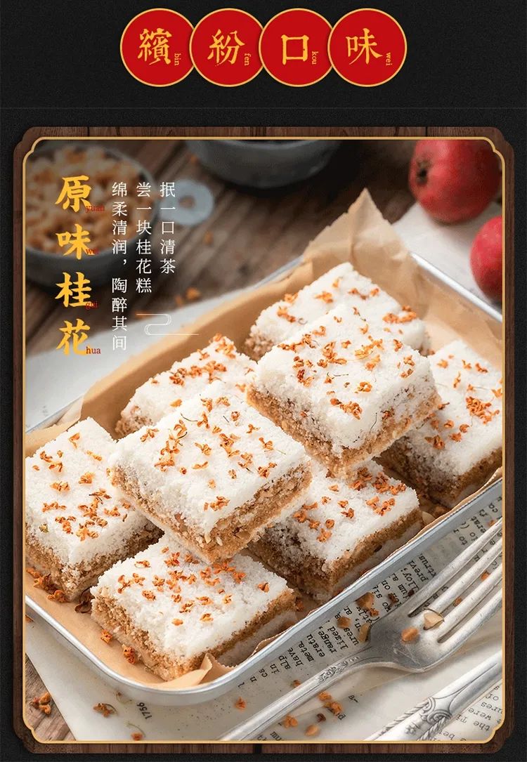 今天给大家介绍这款 ,百年工艺传承,花香扑鼻,软糯韧性十足的桂花传统米糕!