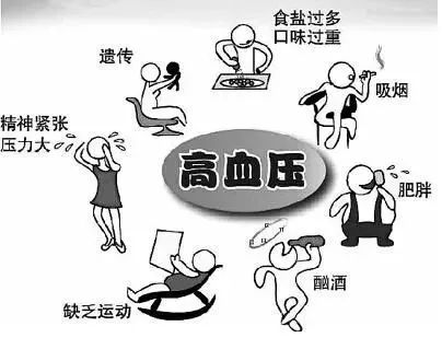 因遗传因素、精神和环境因素(长期的精神紧张,激动,焦虑,受噪声或不良视觉刺激等因素)、遗传因素、年龄因素、生活习惯(膳食结构不合理,食用过多的钠盐及过多的饱和脂肪酸等,吸烟可加速动脉粥样硬化从而引起心脑血管等疾病)、药物因素(避孕药、激素药、消炎止痛药等)。