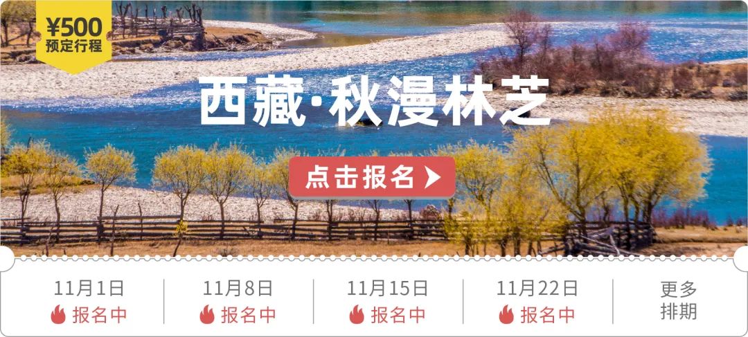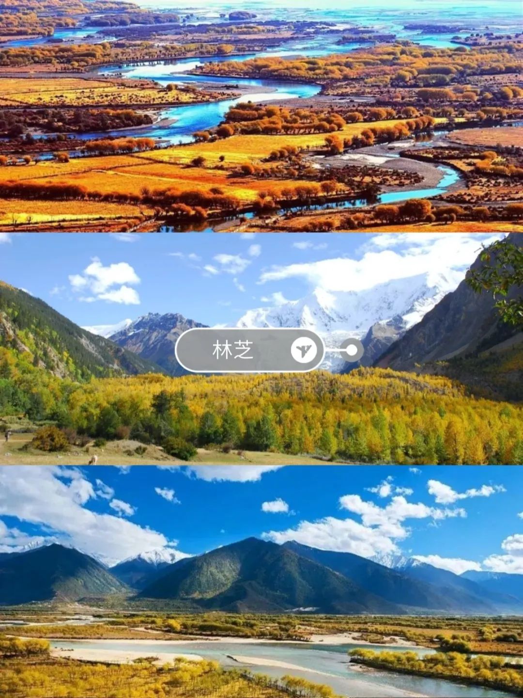 Info:林芝的春天姹紫嫣红,而它的秋天,湛蓝的天空、金色的松林、满目的冰川雪山,构成了一幅秋色画卷。