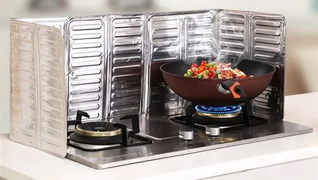 遇到爆炒、煎炸、油炸的时候,菜菜都会在灶台上放上挡油板。