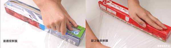 厨之秘的保鲜膜就不一样了,一手按着一手拉扯,“撕”的一声就断了。