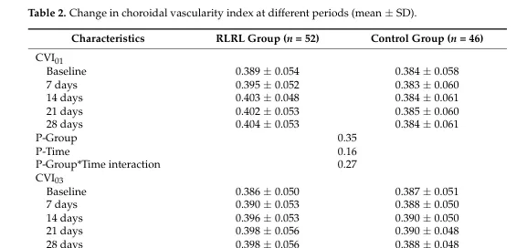 表2.不同时期脉络膜血管指数的变化(平均值±标准偏差)。