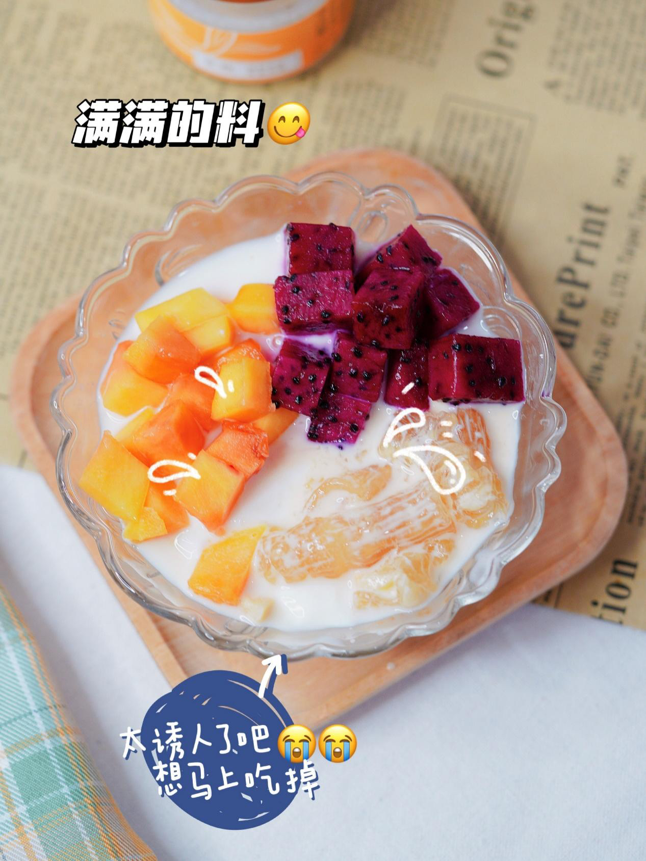 虽然不算成功但是味道还是非常好的,还配了我最爱的花胶和一些水果粒,味道真的绝美!