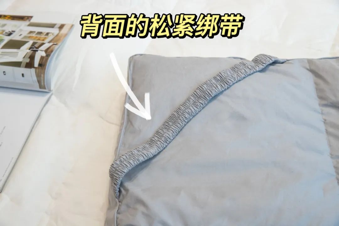 细节方面也很感人,很多人都喜欢它的大充绒格,弧度大面料和身体接触更平整,躺上去超级贴身。