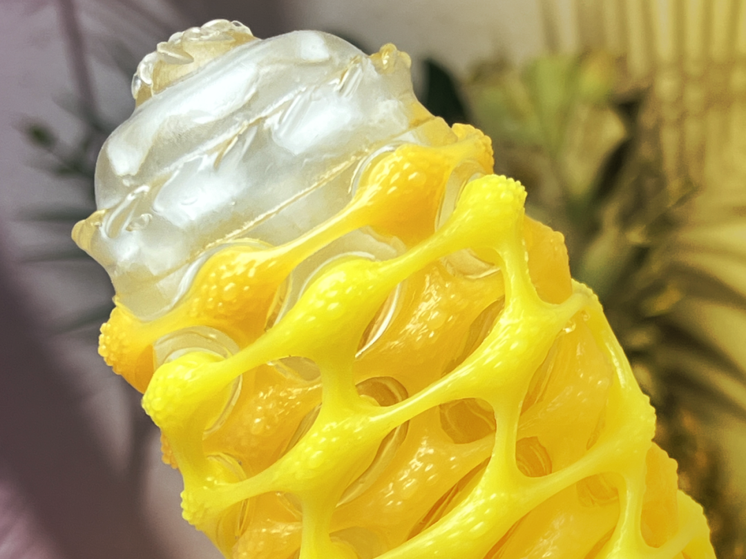 凤梨派的内部结构设计精妙,呈双层网格状。橙色网格紧密贴合杯身内壁,与杯壁完全融为一体,为整体结构提供了稳定支撑。