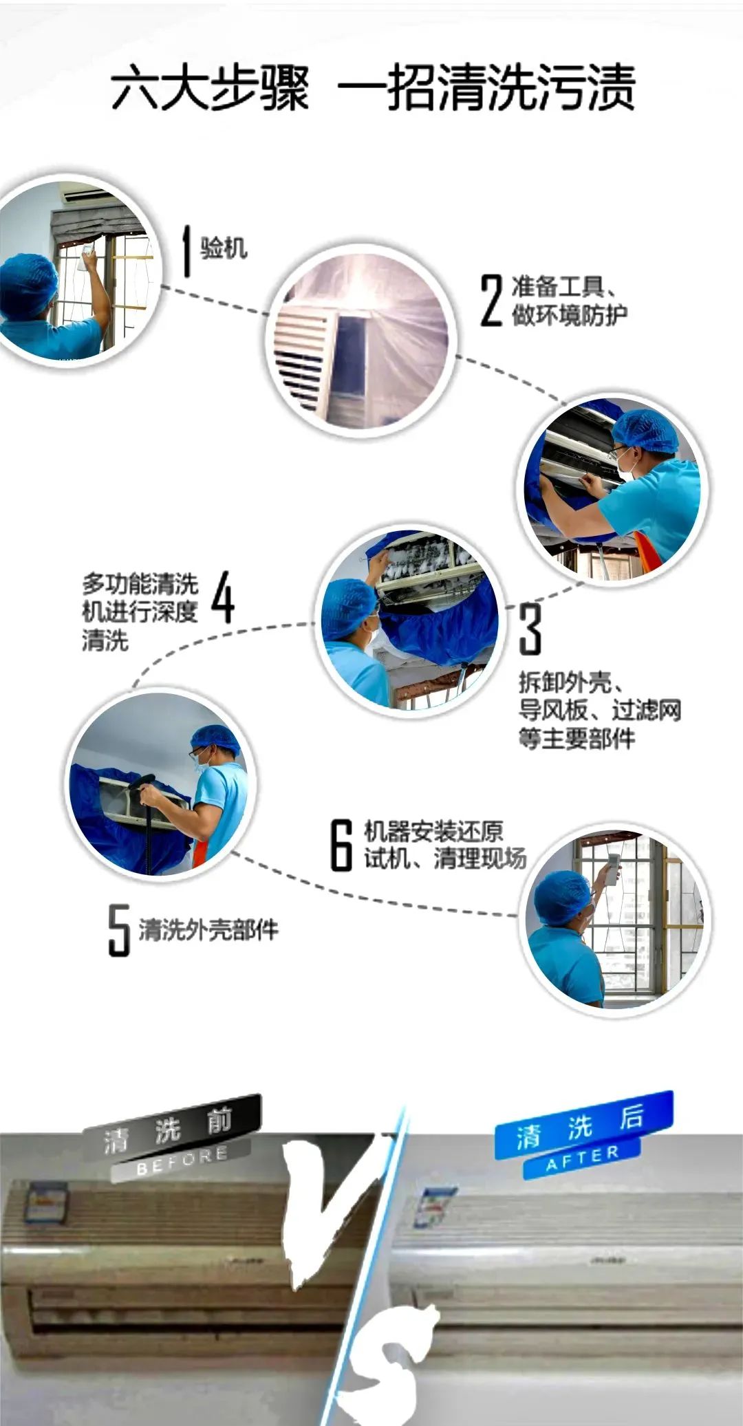 百项服务标准,让干净看得见,细分服务,整个空调清洁完之后宛如新生!