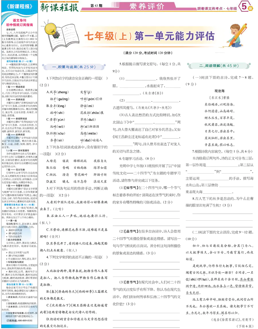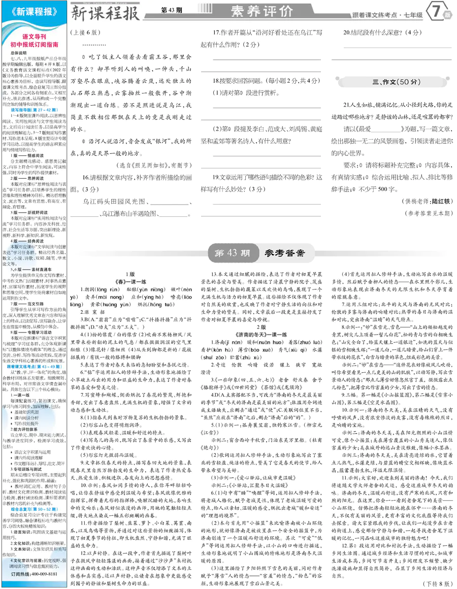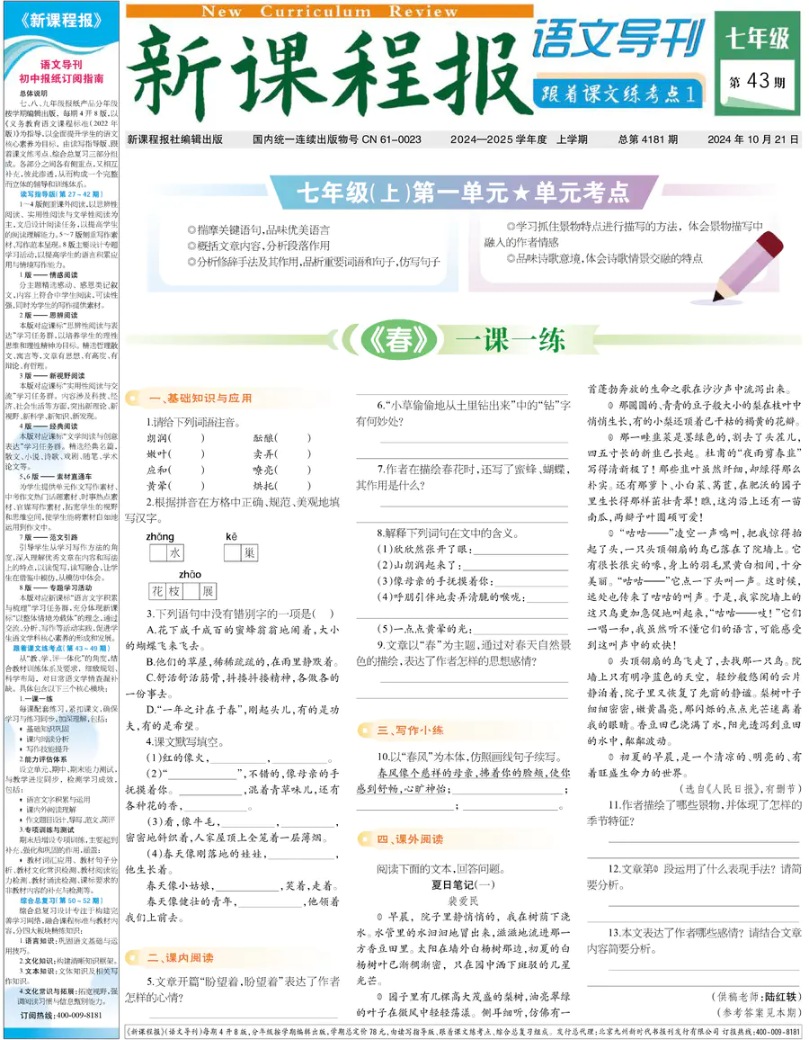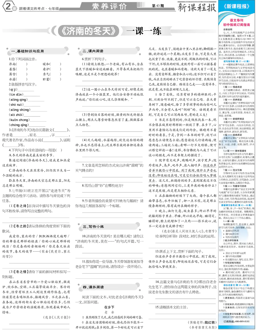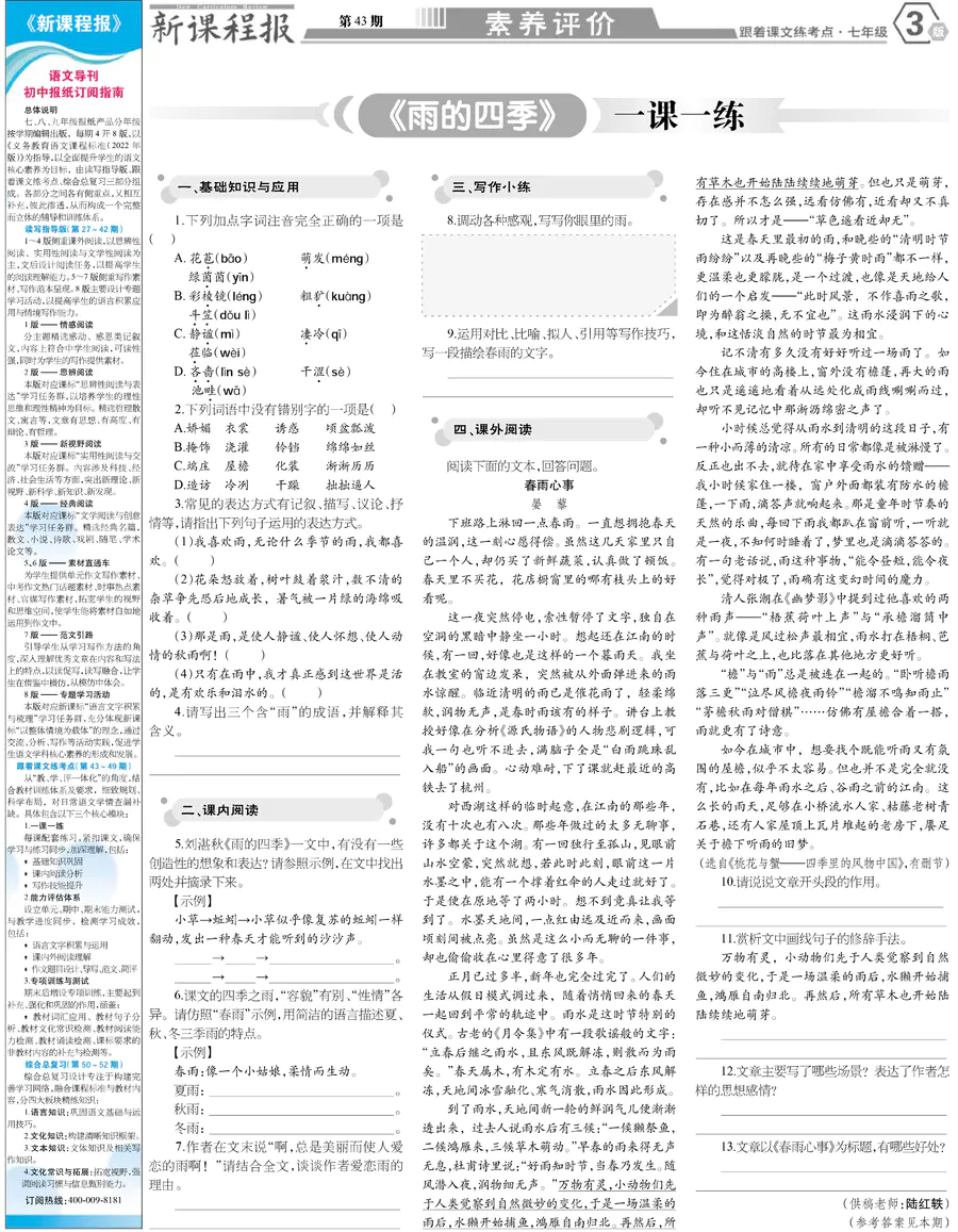 七年级 跟着课文练考点