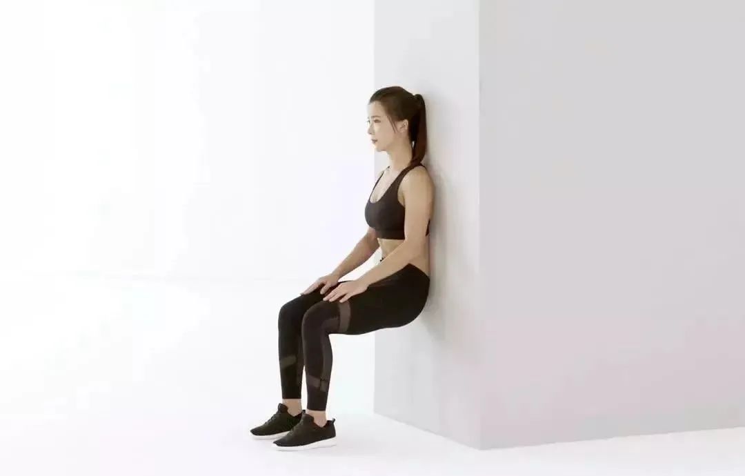 3. 背靠墙,缓慢下蹲,保持膝盖不超过脚尖,下蹲角度以90度左右为佳,大腿与小腿呈直角,小腿与地面垂直。