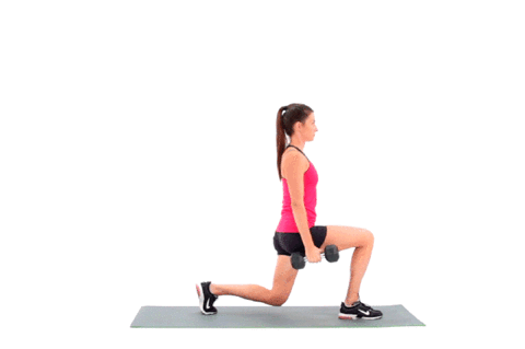 2. 向前迈出一步,保持上身挺直,缓慢下蹲,使前腿的膝盖呈90度。