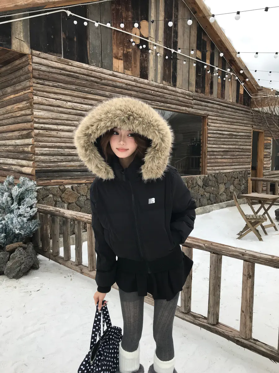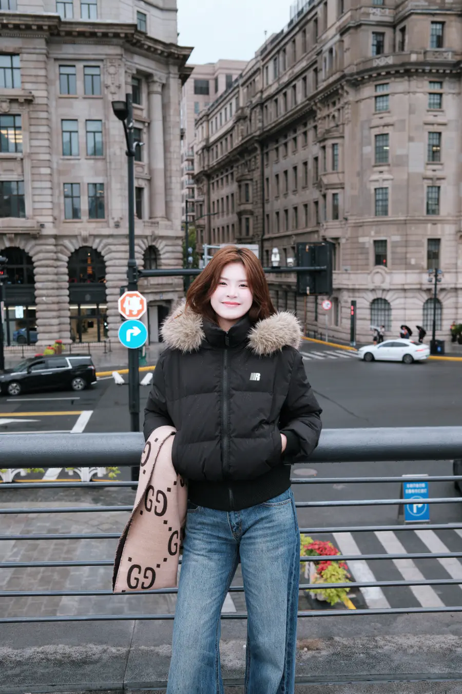 一套好舒适又自在!面包羽绒服连帽毛领设计自带休闲感,收腰版型藏肉又显比例 秒get大长腿