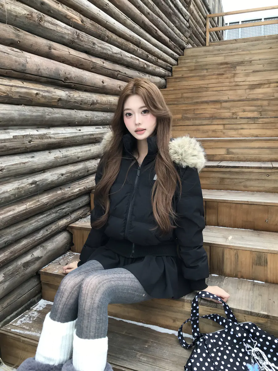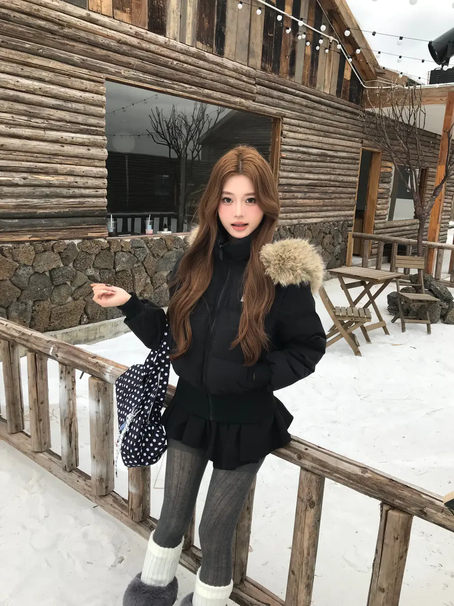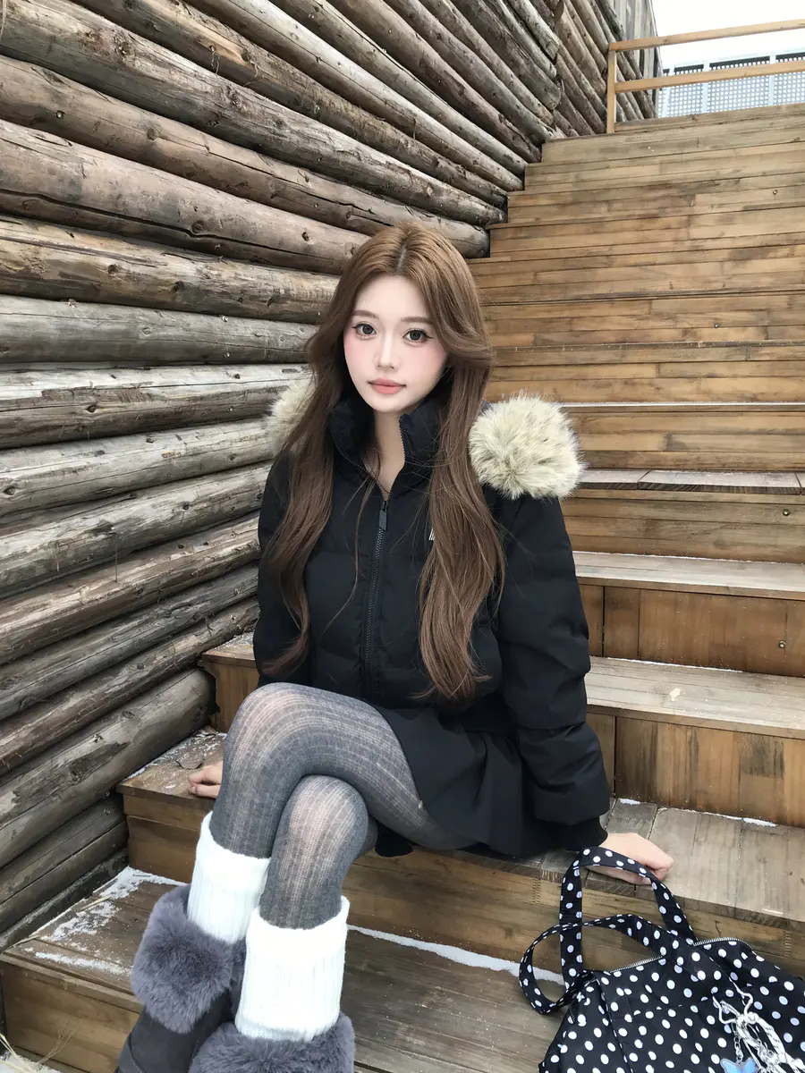 一套好温柔啊,面包羽绒服收腰设计不臃肿,毛领增加氛围感,搭配雪地靴保暖又非常简约高级