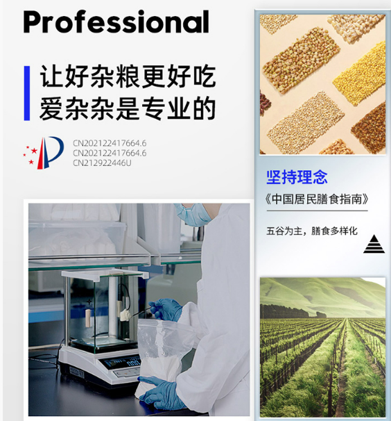 旗下“爱杂杂”品牌是以《中国居民膳食指南》“食物多样化、五谷为主”的品牌概念主旨的五谷杂物健康食品品牌。