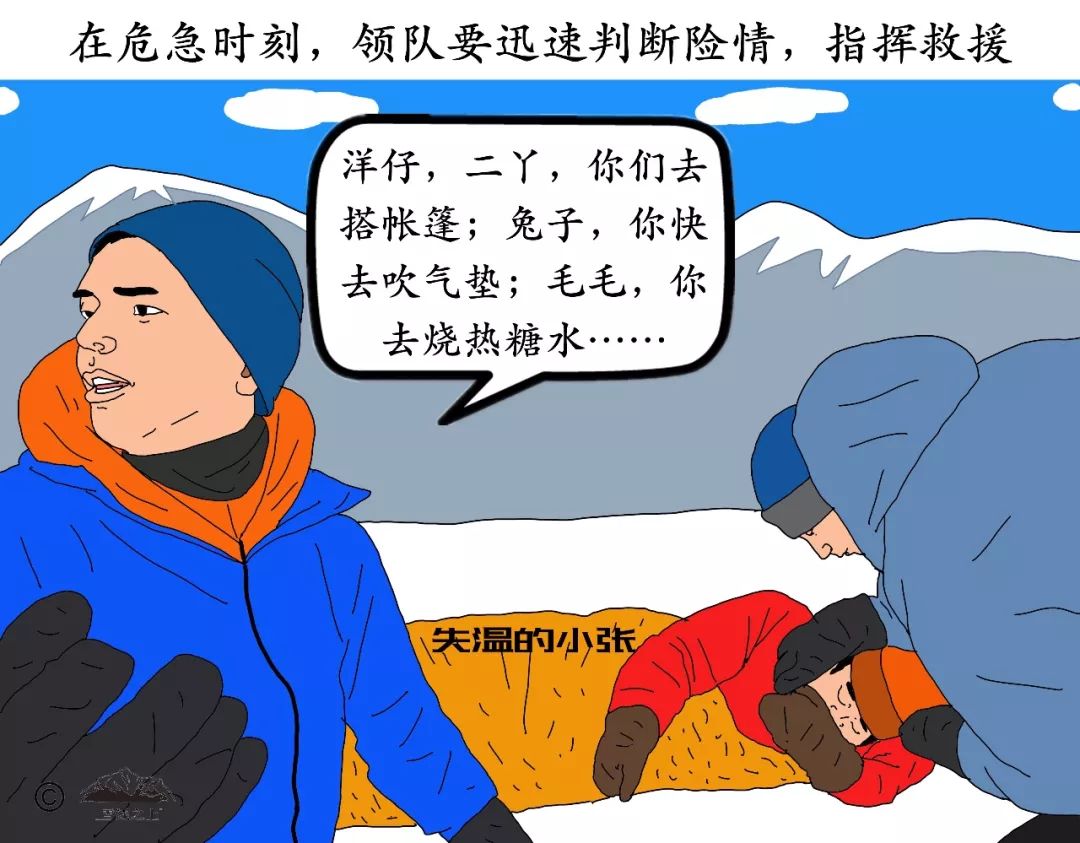 无论是天气突变,还是队员受伤,当问题已成定局,大家乱成一锅粥才是更可怕的。有经验的领队会尽量遵守“不亲为”原则,主要负责指挥他人、顾全大局。