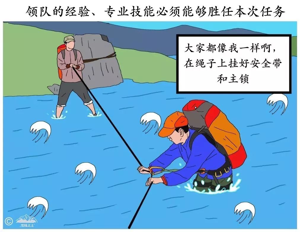 领队是“小白”,领队没经验,不能把正确的技能展示给大家,不能及时给队员指出技术失误,不能在危急情况下迅速控制局面,团队就有风险。