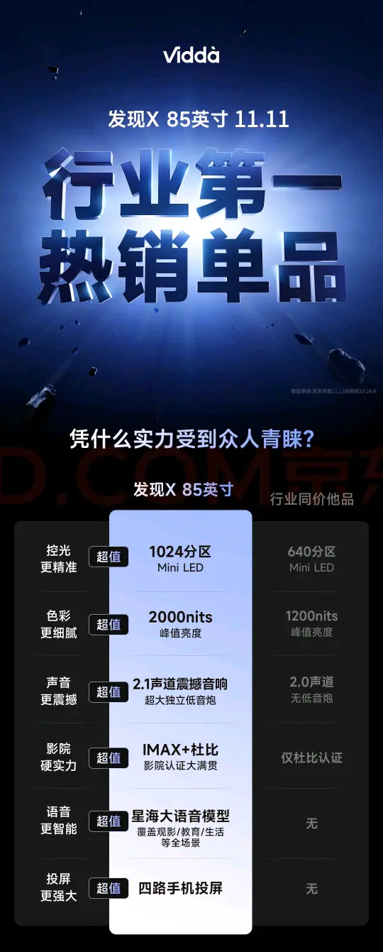 🌟性能:1024分区+2000nits亮度、AI画质调校、IMAX认证