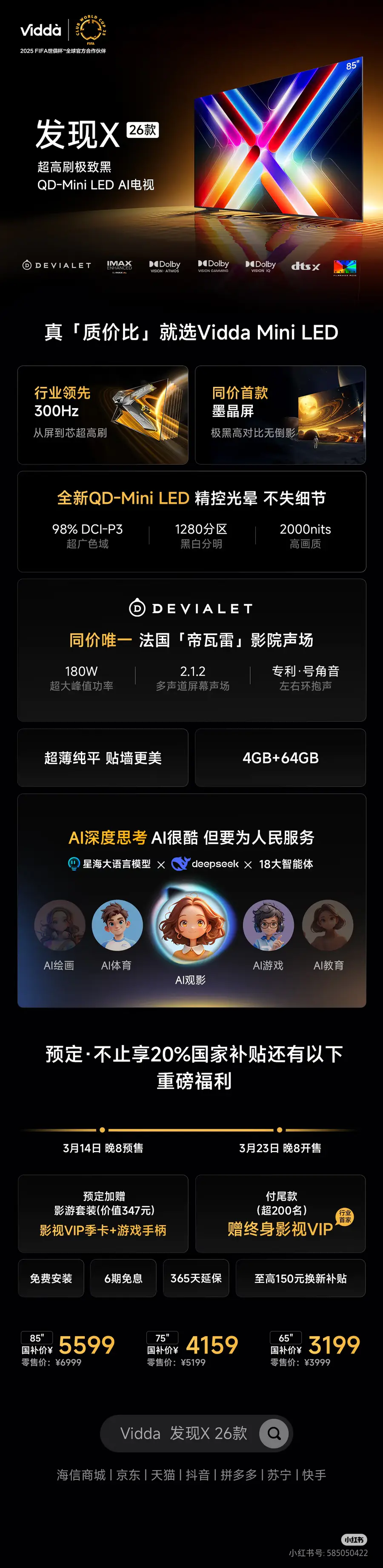 🔥Vidda电视选购指南|闭眼冲不踩雷!💰现在下单还能薅国补+返现,血赚不亏!还能免费安装!