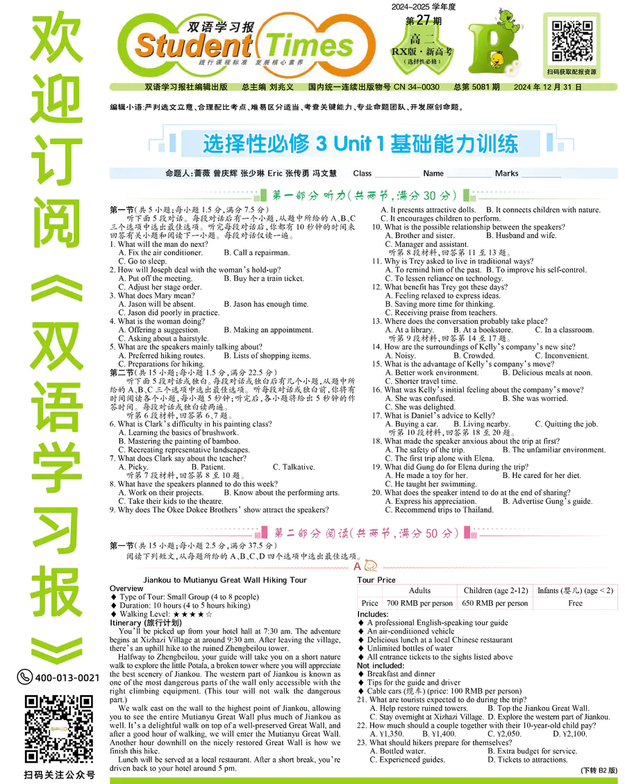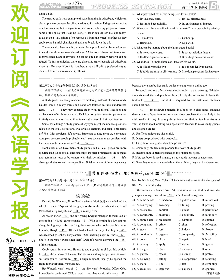 高中英语样报 高二 RX版 新高考 第27期