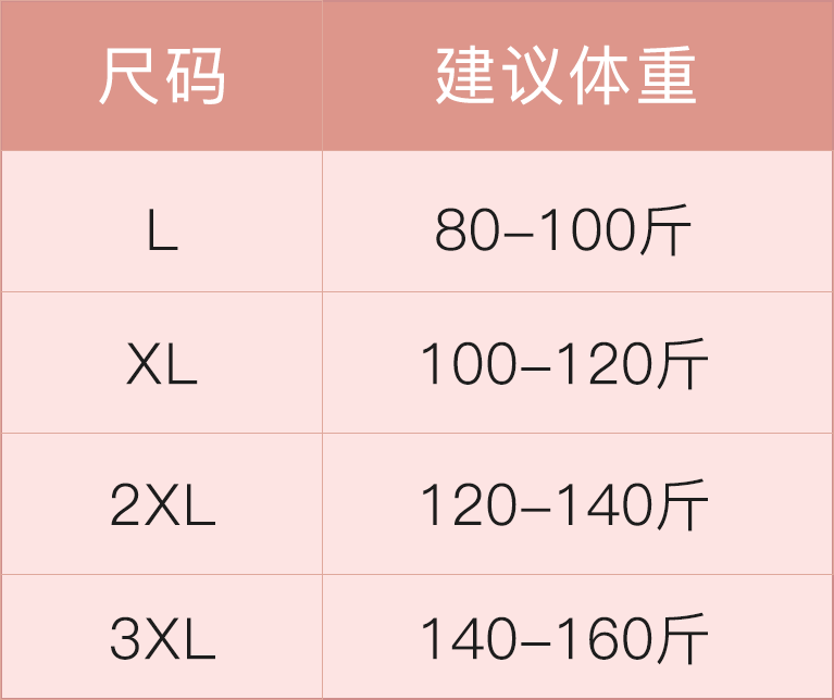 尺码的话,4种码数,80-160斤的朋友都能穿,包容度很大。