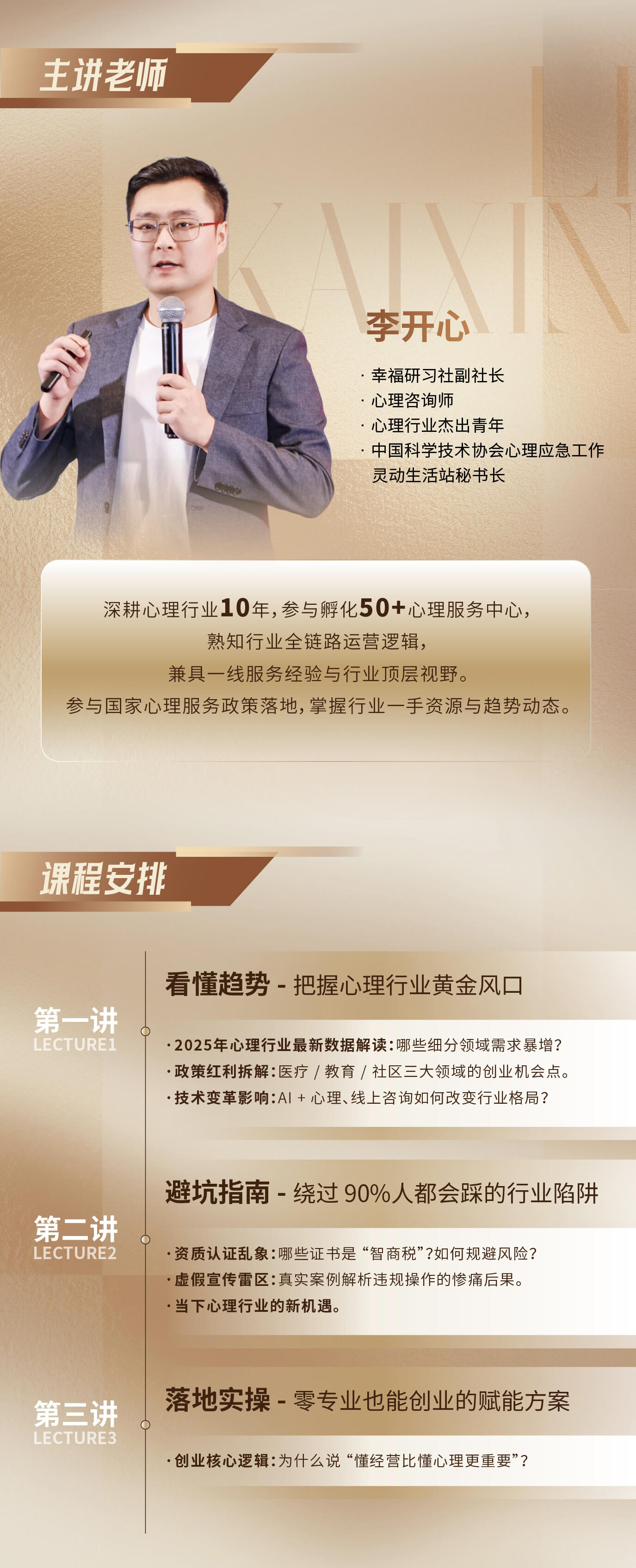 课程安排:李开心社长亲自上阵带队