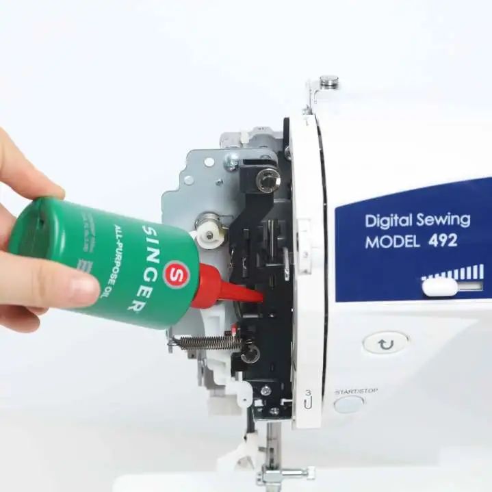 即使再忙,也别忘记为缝纫机添加1-2滴缝纫机油哦~可有效保护轴承、齿轮等传动部位,车缝声音更轻,机器常用常新。延长机器的使用寿命。