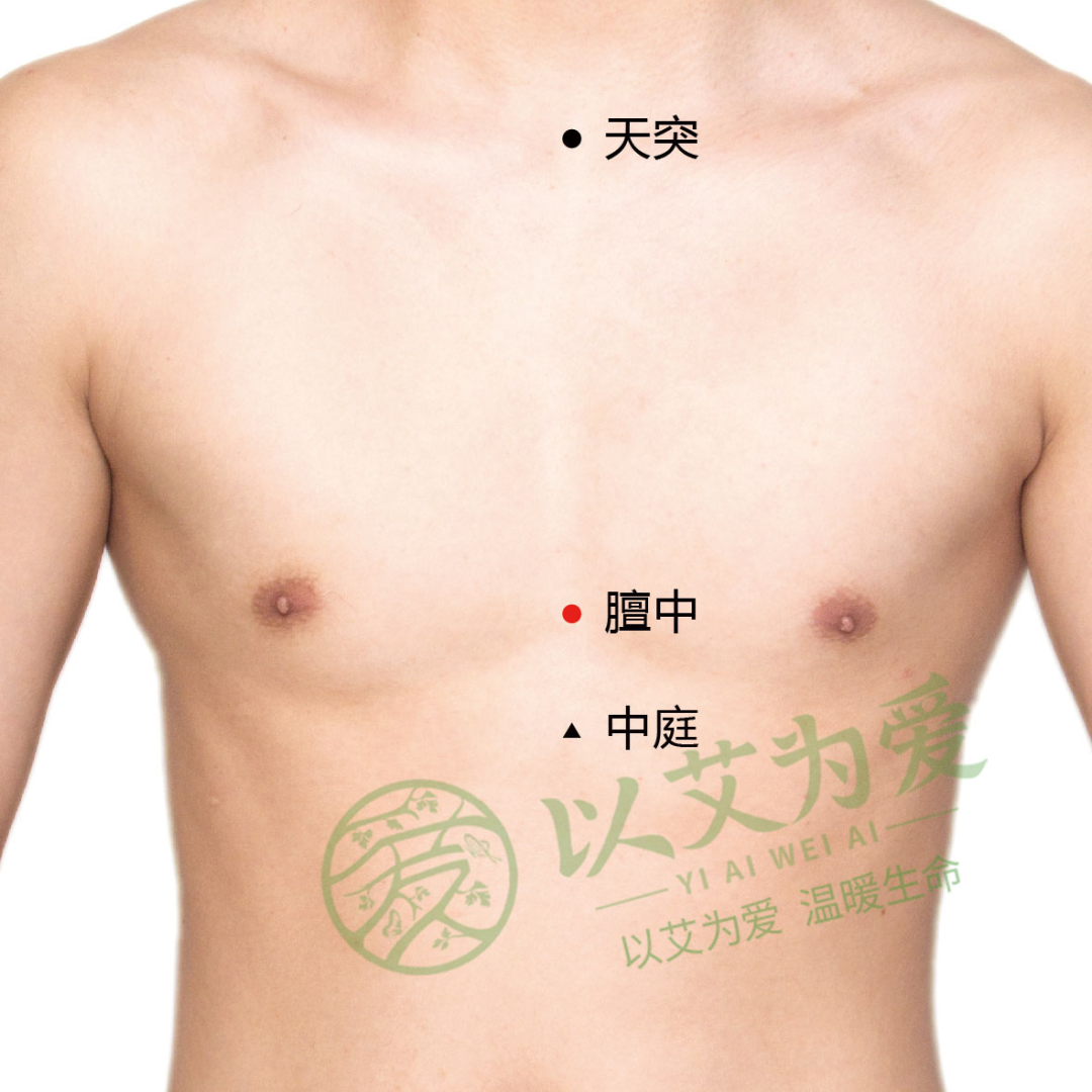 ②前胸的"膻中穴"
