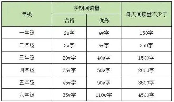 ️小学生课外阅读总量不少于145万字;️初中生课外阅读总量不少于260万字。