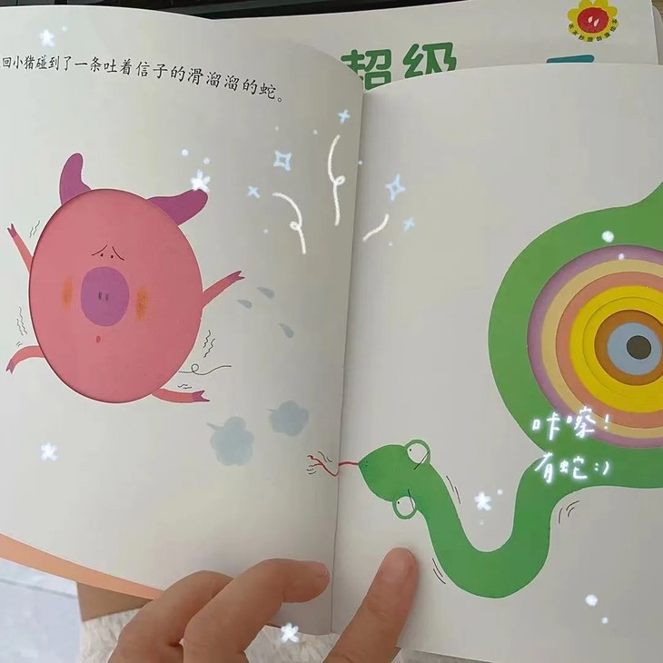 这套书,整体读下来有很多能与孩子互动的地方,有趣又可爱,有时候忍不住也和孩子一起沉浸书中的创意世界里,充满惊喜。而书里的插画同样很有意思,插画大师根据故事情节而裁切成的大大小小的洞洞,让图画与图画之间,页与页之间重新产生一种新奇妙趣的联系。充满创意的构造,看上一整天都不会厌倦!