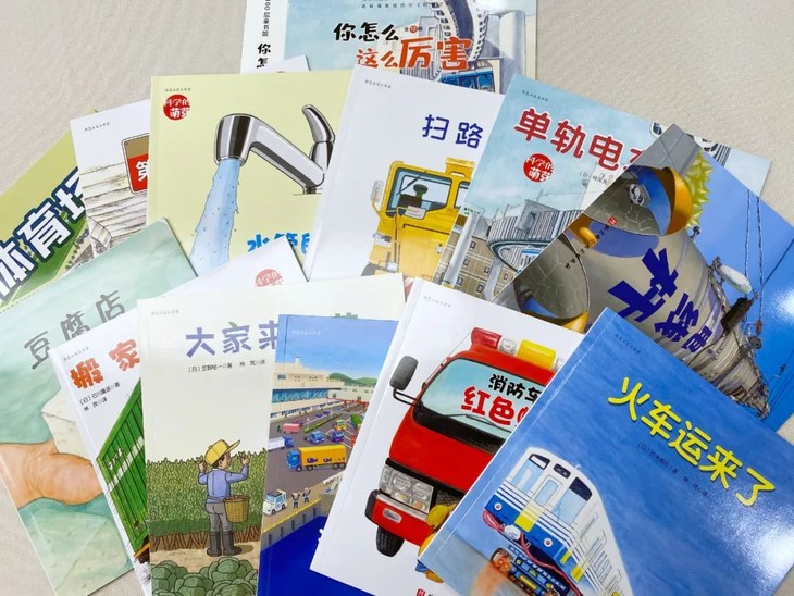 分别是:《火车运来了》《港口的一天》《电线杆》《消防车的红色螺钉》《体育场》《水管的秘密》《单轨电车之旅》《扫路车》《豆腐店》《第一次坐地铁》《搬家》《大家来制茶》。