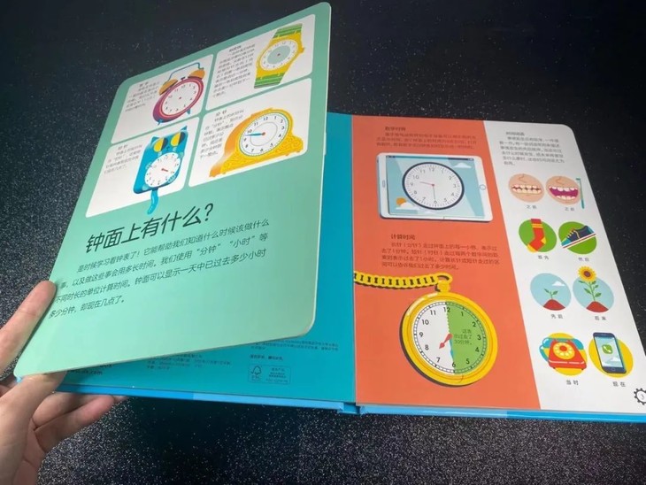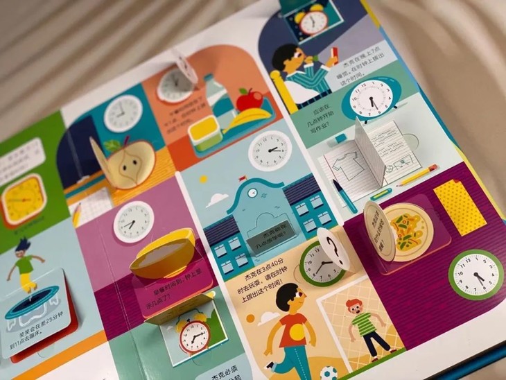 5️⃣版面设计清晰明了,配合表盘、翻翻页和互动问答帮孩子轻松科普时间知识。