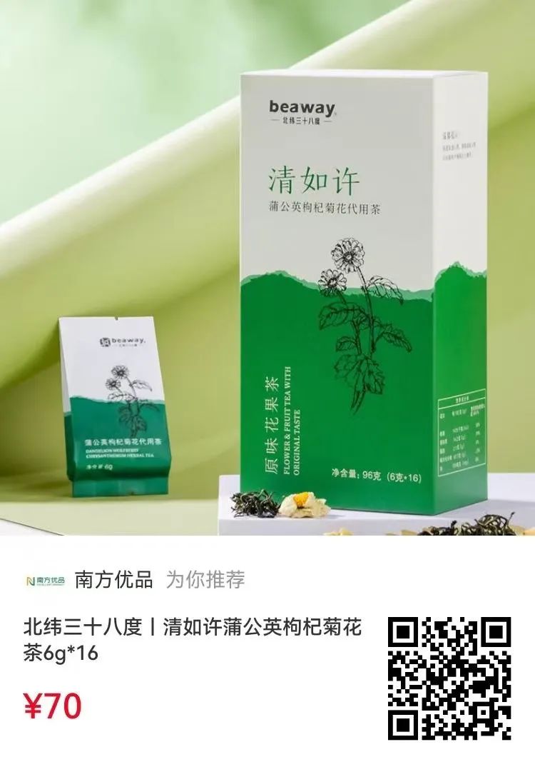 每天15分钟慢饮时光,既是身体充电的契机,更是快节奏生活中的疗愈仪式。清如许蒲公英枸杞菊花茶采用独立便捷袋装设计,每个小茶包配好恰当的比例,以干净卫生、快速冲泡、口感新颖、口味丰富等特点,成为春夏之交的“茶饮新宠”。