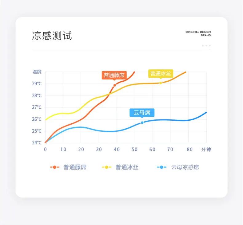 做为一个成熟的凉席,要学会自己调节温度。凉席里的冰丝纤维会根据体温自动调节吸热散热速度。体温过热时加快吸热散热,低温低时,停止吸热散热。始终将凉席温度控制在20℃—25℃。