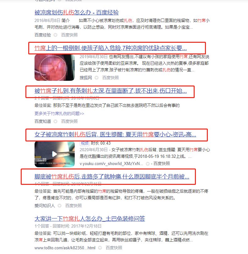 特别是家里有宝宝的,更要远离竹席、草席。宝宝娇嫩的皮肤很容易被细小的竹刺扎破。每年都有几百条被竹席扎伤的新闻报道。