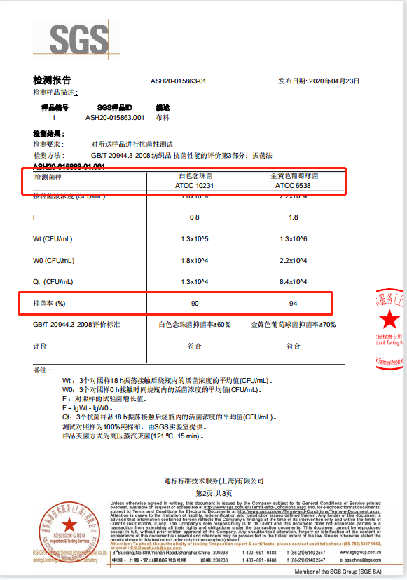 经过检测认证,对白色念珠菌、黄金色葡萄球菌的抑菌率达到90%以上。