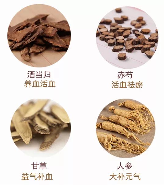 “酒当归、赤芍、甘草、人参”