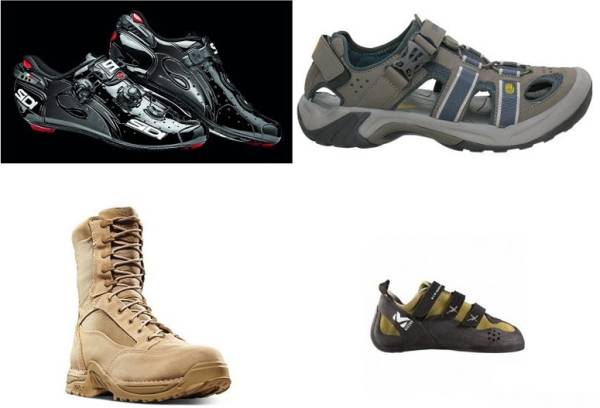 户外运动项目很多,相对应的鞋款也非常之多,譬如,朔溪鞋、攀岩鞋、攀冰靴、沙漠靴、自行车用鞋、越野驾驶用鞋和各种户外竞技体育项目用鞋。由于本文主要是普及大众户外鞋,同时也限于篇幅的原因,在此就不多介绍这些较为专业的户外鞋了。
