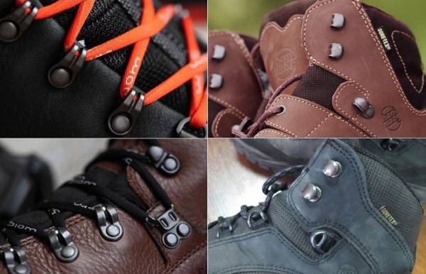 鞋子的款型一般为中高帮,鞋面普遍采用皮革,部分鞋款出于增加透气和减轻重量的考虑也有采取皮面和尼龙耐磨面料拼接的。