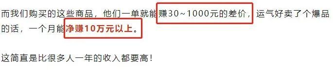 的确,普通人光光囤货这一点就够呛了,更别说还要烧钱推广商品了,根本就干不过资金雄厚的大商家。同样是赚1万元,它不用花钱囤货,不用花钱推广,只要你每天花1小时照着模板上架商品就够了!这个项目不仅小众竞争小,还有官方扶持,月入五位数,真的跟玩儿似的简单。虽然疫情已经过去半年,但是家里还欠债10万,靠淘宝红利新项目,半年还清债务、还买了车子、月赚五位数票子的我,就是活生生的例子。