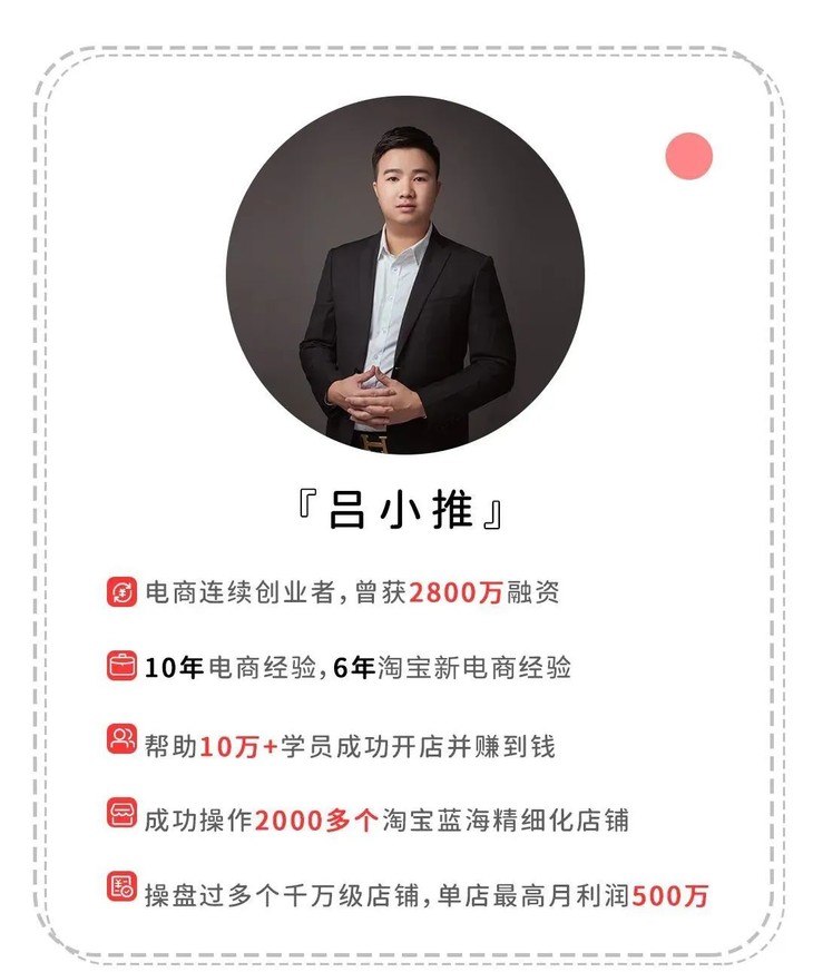 于是,小推老师把这套深耕5年总结出来的方法创造了这套「淘宝新电商赚钱训练营」训练营带你从0到1入行的同时,还不浪费你精力独自摸索。
