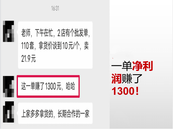 你知道你在淘宝上买的衣服,以及各种小商品,90%以上都是出自淘宝新电商店铺吗?淘宝用户量巨大,货源工厂根本服务不过来那么多人,所以需要有人来分担订单压力。那段时间,电动牙刷这类产品在网上很火,很多人买,大家看到的普遍要200-300元。而我用老师送的工具在网上找到了一个69块的工厂货源,是给某品牌代工的。