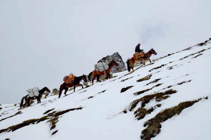 今天是整个行程最有挑战的一天,做完出发前的运动后,翻越门克廷达坂(3495m)。