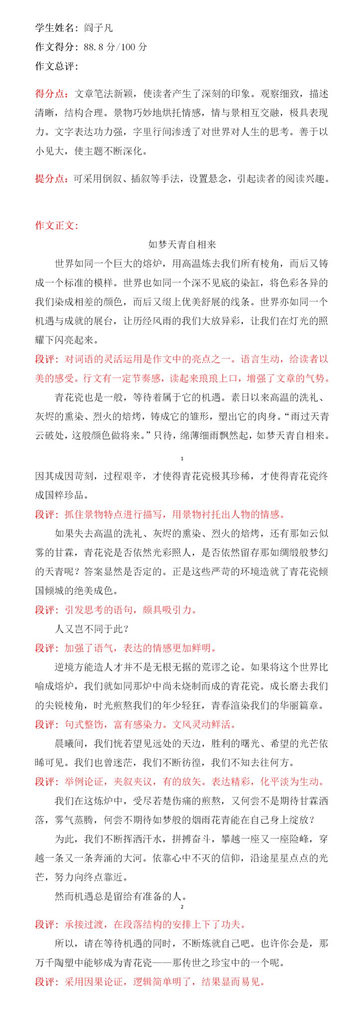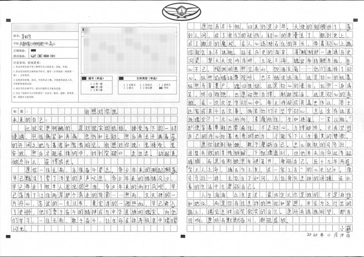 青春是一曲华美的乐章。或雄浑或浅吟,或豪放或婉约。子凡,既然选择了吟唱,那就用尽所有力量吧。愿你志存高远,笃力前行。于毫末处成合抱之木,于平凡中凤鸣九天,期待你的响遏行云,加油。