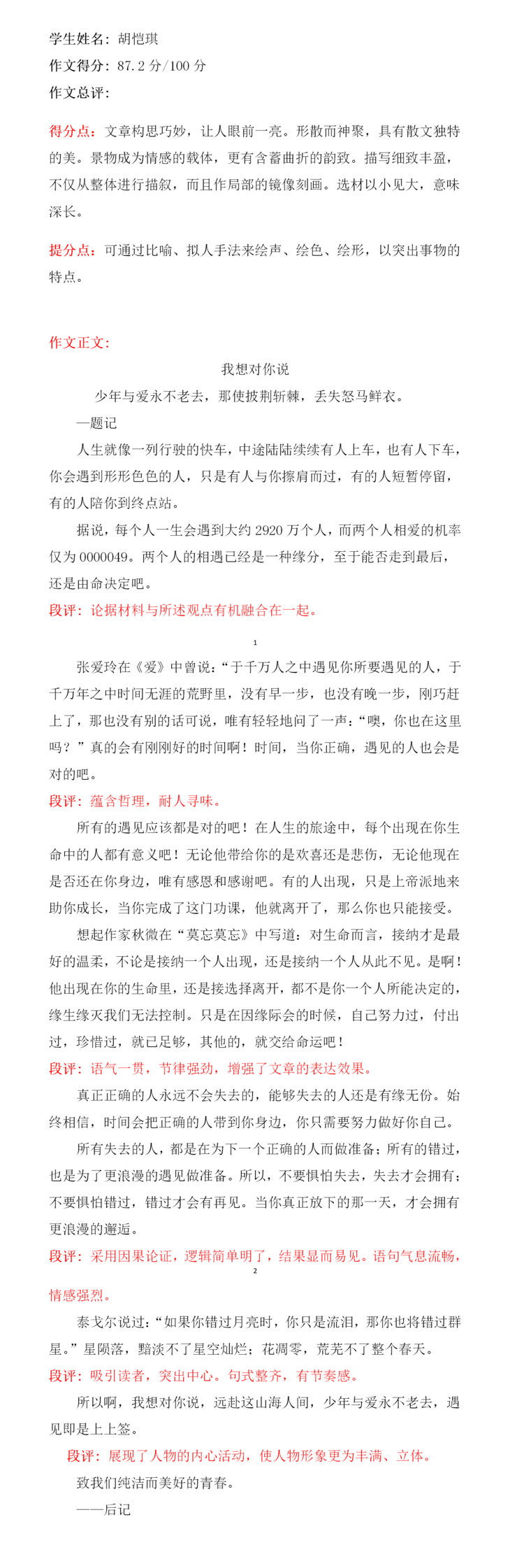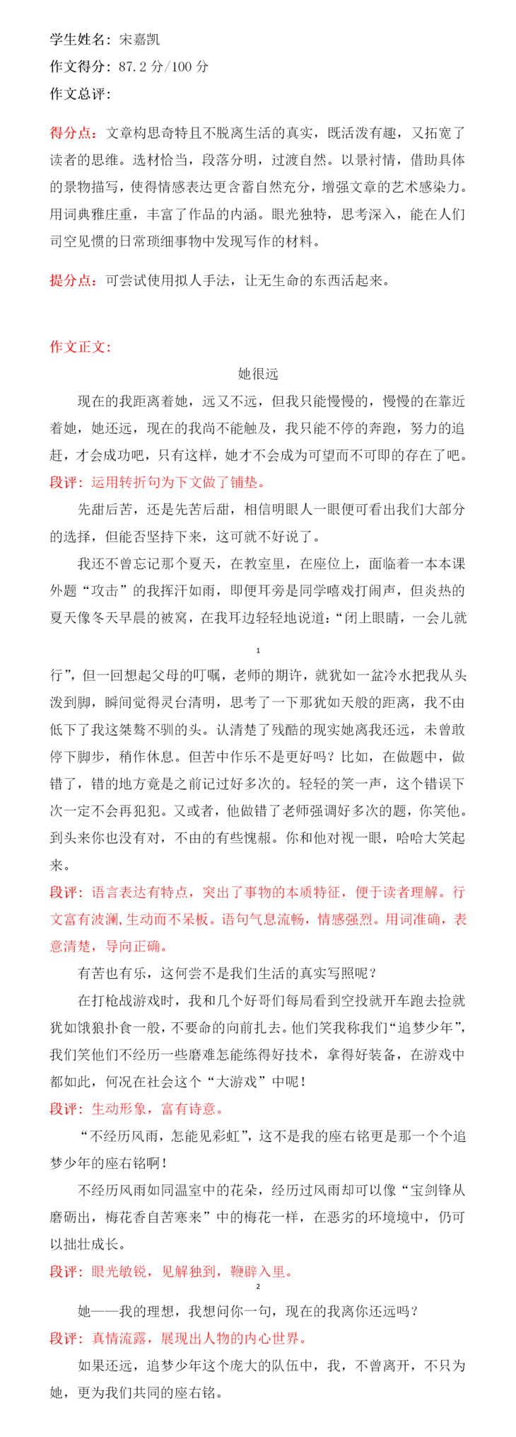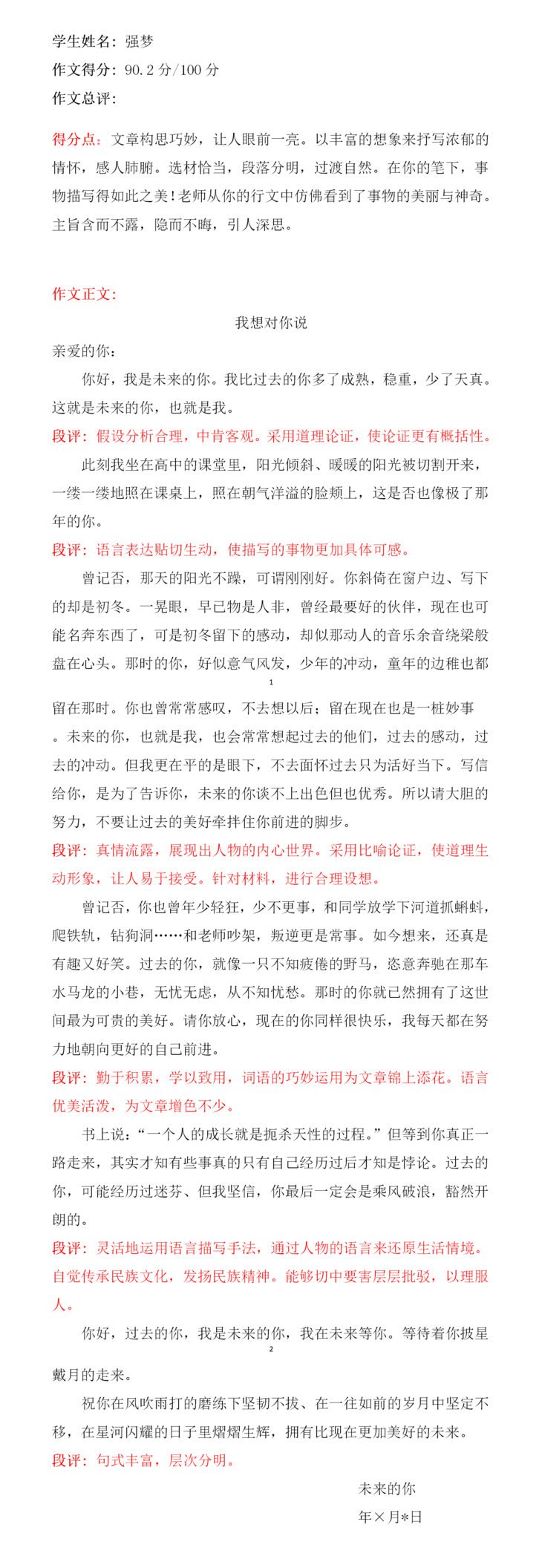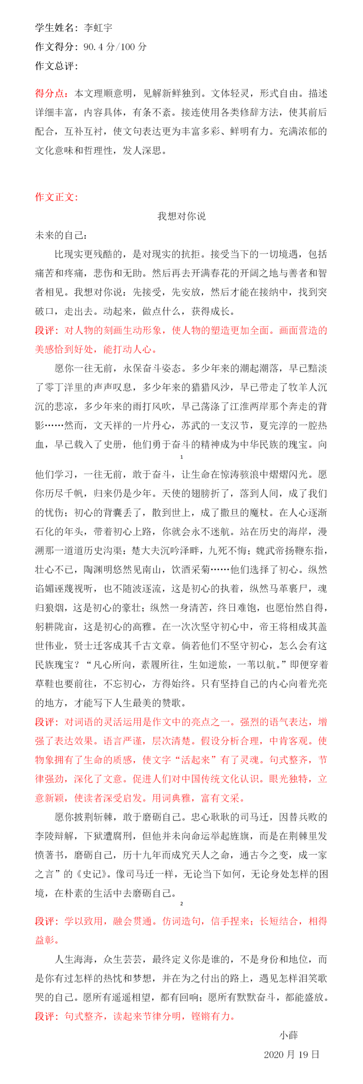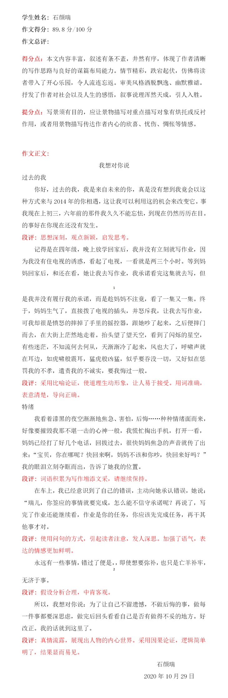 孩子,首先对你这次作文竞赛中的表现由衷感到欣慰,并对你取得成绩表示祝贺。这是你通过自身大量的阅读积累和你在对事物发展的细心观察领会后的心得。