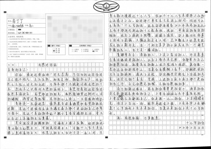 高中三年很短暂,在这三年里,希望你好好学,跟紧老师的步子,为了将来多一份选择的机会。不要去取得一点成绩就沾沾自喜,一定要严格要求自己、挑战自己,为梦想加油,在最该奋斗的年纪不留遗憾,平凡且充实的过好高中生活的每一天里。